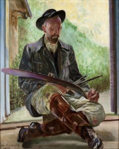 Artist's self-portrait with a palette