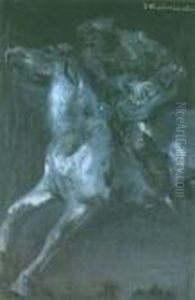 Konie Przed Chata (scena Z Powstania Styczniowego ?), Ok.1922 R.