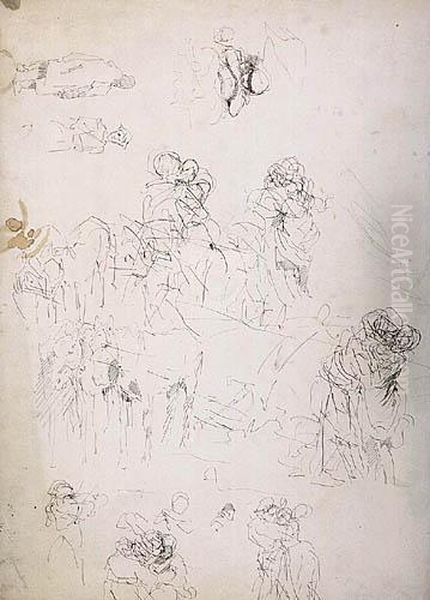 Arkusz Z Luznymi Szkicami Postaci (szczegolnie Obejmujacej Sie Pary)