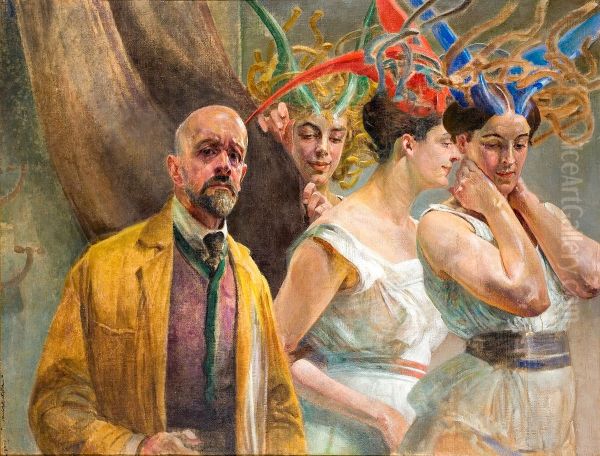 Bring the timeless beauty of Jacek Malczewski's Autoportret z Gorgonami into your home with a handmade oil painting reproduction. Carefully recreated on canvas by skilled artists using traditional techniques, this piece captures the delicate brushwork, subtle light, and vibrant color of the original masterpiece. With museum-level quality and rich texture, it brings elegance and artistic depth to any space. Enjoy free shipping and make this masterpiece a part of your personal collection.
