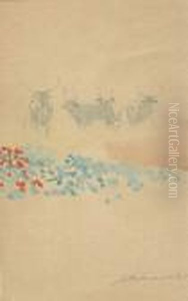 Pejzaz Z Krowami (na Odwrociu Szkic)