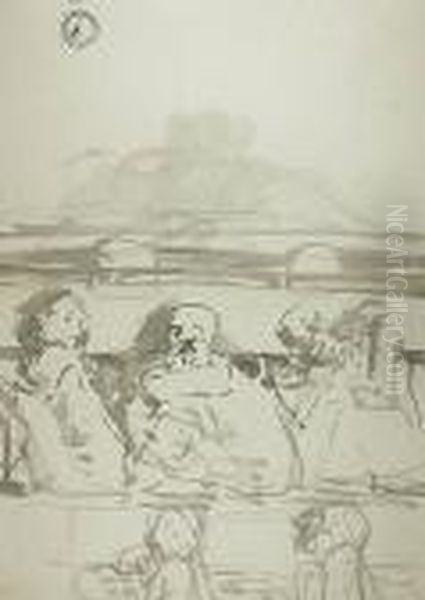Scena Z Postaciami Mezczyzn Przy Stole Oil Painting by Jacek Malczewski