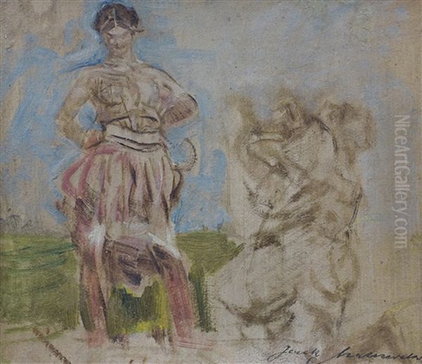 Bring the timeless beauty of Jacek Malczewski's Sketch With Two Figures into your home with a handmade oil painting reproduction. Carefully recreated on canvas by skilled artists using traditional techniques, this piece captures the delicate brushwork, subtle light, and vibrant color of the original masterpiece. With museum-level quality and rich texture, it brings elegance and artistic depth to any space. Enjoy free shipping and make this masterpiece a part of your personal collection.