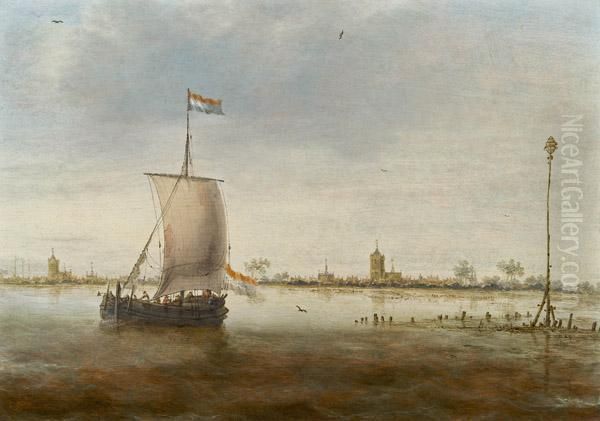 Segelschiff Vor Einer Hollandischen Kustenstadt