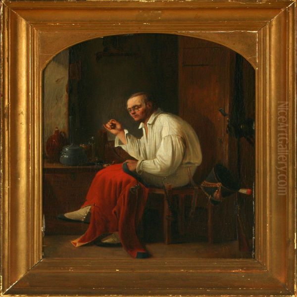 Interior Withsoldier Repairing His Uniform