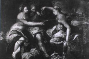 Venus And Cupid With Aeneas Fleeing The Burning Troy Beyond