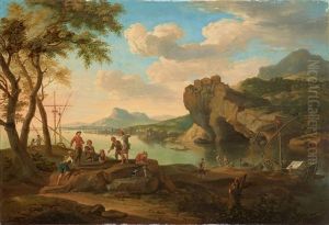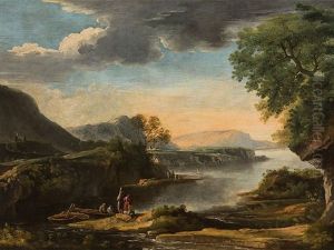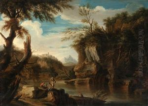 An Extensive Italianate River Landscape With Figures Resting On A Rock; And Figures Fishing In An Extensive Italianate River Landscape (2 Works)