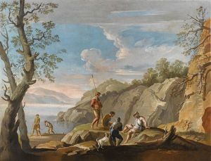 Felsige Kunstenlandschaft Mit Staffagefiguren