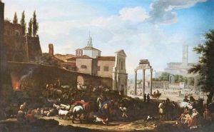 Paysage Classique Anime De Personnages Avec Le Temple De Venus Et De Rome Au Forum Romain