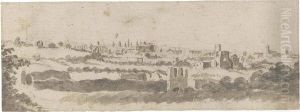 A Wooded Landscape With A Fortified Town And Mountains Beyond