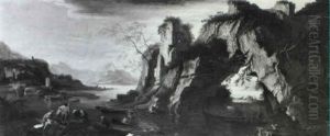 Southern Landscape With Figures Beside A Tower Overlooking A River