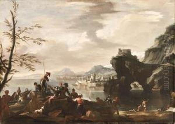 A Mediterranean Coastal Landscape With Banditti In Theforeground