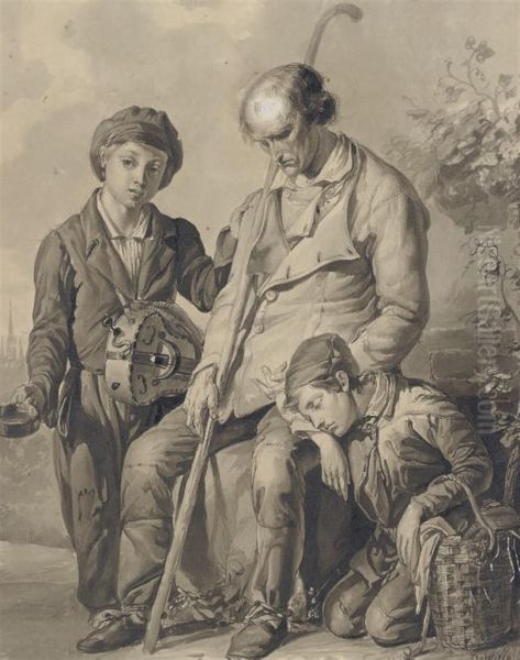 A Blind Beggar With Two Young Boys, One With A Hurdy-gurdy