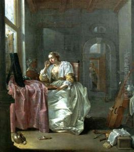 Interieur Mit Lautespielerin