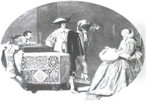 Guardroom Interior With Cavaliers And Elegant Ladies Gaming