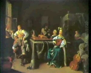 Merry Company Making Music In An Interior