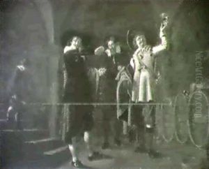 Soldiers And Women Playing Cards In A Barn