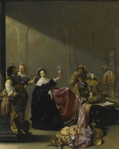Guardroom With Soldiers Playing Tric-trac And Courtesans With Jewellery