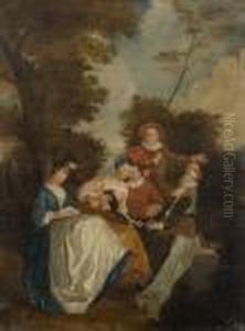A Group Portrait, Probably Of A Family, Making Music In An Interior