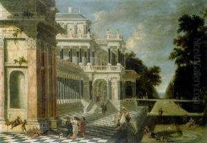 A Palace Capriccio Scene With Elegant Figures