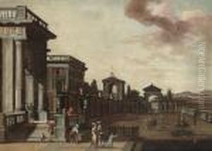 A Capriccio Of A Classical Palazzo With Elegant Figures Conversing