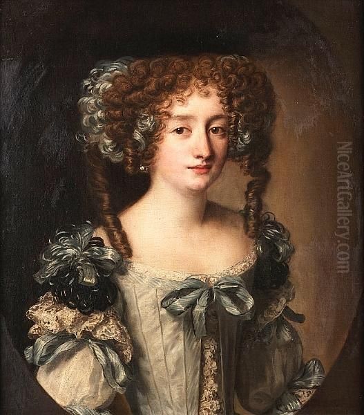 Portrait Of Hortense Mancini, Duchess Of Mazarin, Half-length, In A Pale Blue Dress With Blue And Black Bows