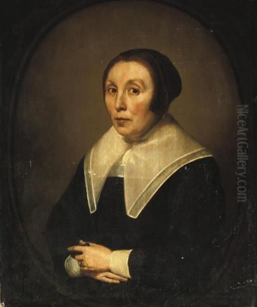 Portrait Of A Lady, Half-length, In A Black Costume With A White Collar And Cuffs And A Black Headdress
