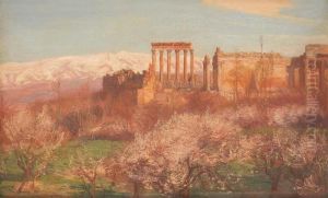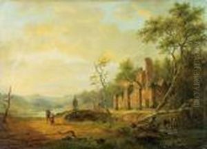 Riders Resting In A Landscpe With Ruins Beyond