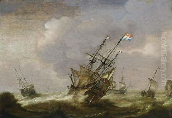 A Dutch Man-of-war And Other Ships In Stormy Seas