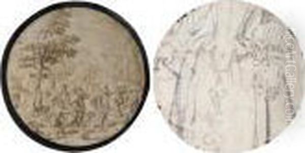 A Hunting Scene In A Forest, A Village In The Distance