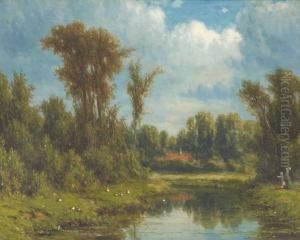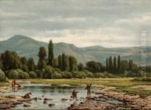 Summer Landcsape With Peasants Resting At The Edge Of A Wood