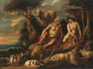 Mercury draws his sword to behead Argus (Ovid, Metamorphosis I, 568-723)