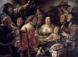 Jordaens, Probably17th/18th C., 'the King Drinks', Oil On Canvasl2at3