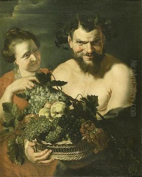 Jeune Femme Et Satyre A La Corbeille De Fruits Oil Painting - Jacob Jordaens