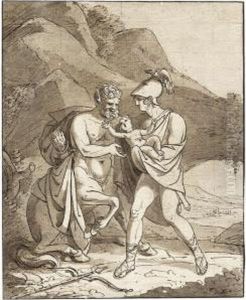 Mercury draws his sword to behead Argus (Ovid, Metamorphosis I, 568-723)