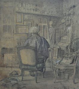 De schilder Frederik Hendrik Kaemmerer aan het werk in Oosterbeek