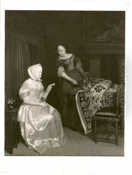 Bring the timeless beauty of Jacob Ochtervelt's Brieflesende Dame mit Magd into your home with a handmade oil painting reproduction. Carefully recreated on canvas by skilled artists using traditional techniques, this piece captures the delicate brushwork, subtle light, and vibrant color of the original masterpiece. With museum-level quality and rich texture, it brings elegance and artistic depth to any space. Enjoy free shipping and make this masterpiece a part of your personal collection.