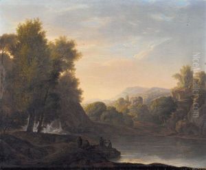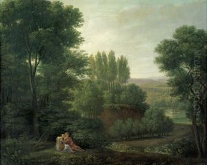 Waldlandschaft Mit See Und Tempietto, Im Vordergrund Drei Rastende Figuren