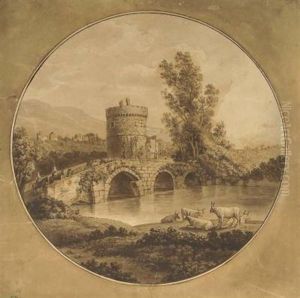 The Volturno With The Ponte Margherita, Near Pisa, With A Herdsman Resting And Peasants On A Path