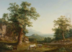 Peasants Grazing Their Cattle Beside A Lake, In A Campagna Landscape