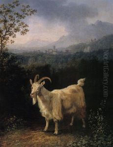 Ziegenhirten An Den Ufer Eines Flustales, Auf Der Anhohe Eine Italienische Villa