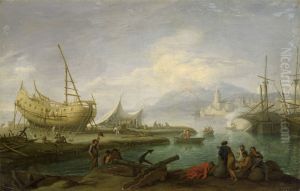 A View of the Coast near Naples with a British Royal Navy Three-Decker flying the Flag of a Vice Admiral of the Red
