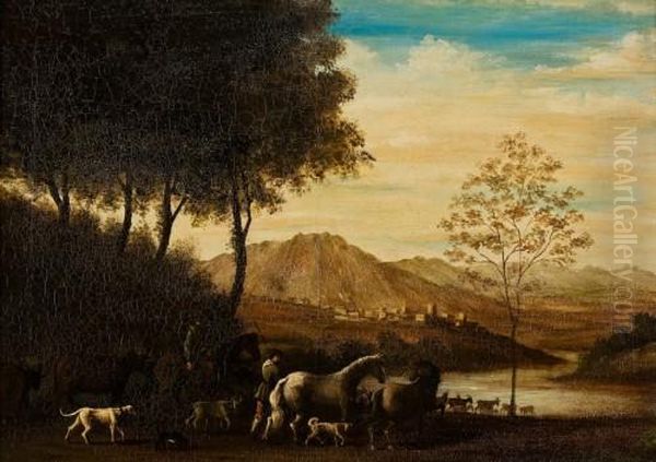 Flusslandschaft Mit Viehherden Und Hirten