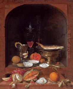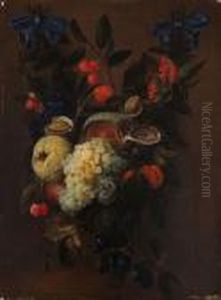 Magnificent Still Life With A Silver Platter With Apricots