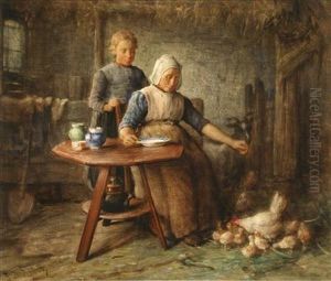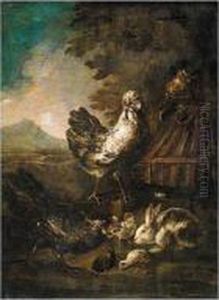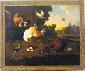 Eine Henne Mit Kuken. Unten Links Moglicherweise Der Rest Einer Signatur. Ol Auf Leinwand (doubliert). H 37; B 51 Cm. Provenienz: Ehemals Im Besitz Eines Erfurter Industriellen.