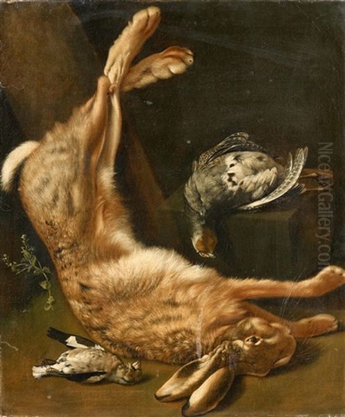 Jagdstillleben Mit Hasen Und Singvogeln