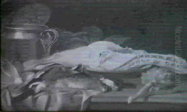 Stilleben Mit Kohlkopfen, Messinggefass, Korb, Apfel, Erlegtem Eichelhaher Und Rebhuhnern...