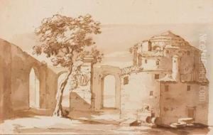 The Roman Campagna With A Villa, Ruins Of An Antique Building Andthree Figures In The Foreground