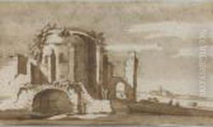 A Capriccio Of An Obelisk And A Classical Temple; And A Capriccio Of Ships Off A Classical Harbour