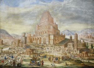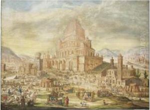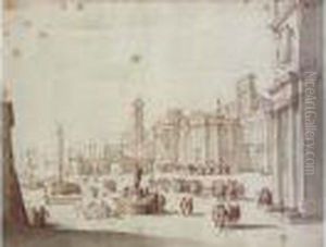 A Capriccio Of Classical Architecture In A Town With Soldiers Andoriental Merchants, A Bridge And Mountains Beyond